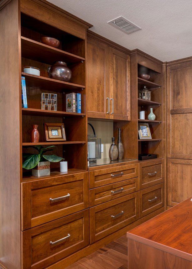 “The office loft is a wonderful blend of woods. We love the look and feel of the Lauzon African Sapele flooring which continues throughout our hall, master bedroom and stairs. The mix of open and closed shelves in the built-in cabinets allows for storing files out of sight and place decorative items instead.”