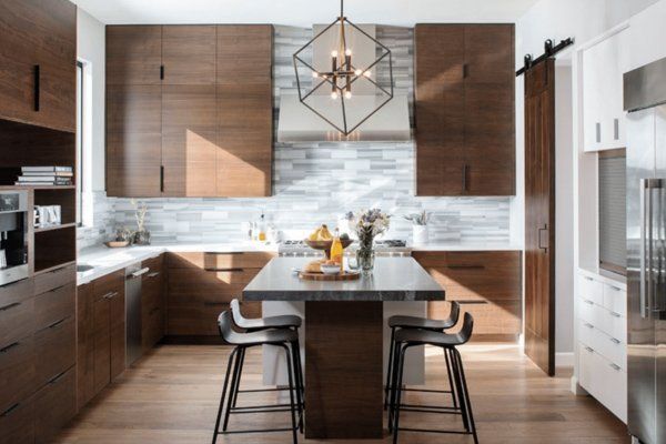 Large, decorative fixtures in sets of two are trending for lighting over the island. Even better – install just one over-sized light fixture for dramatic results.