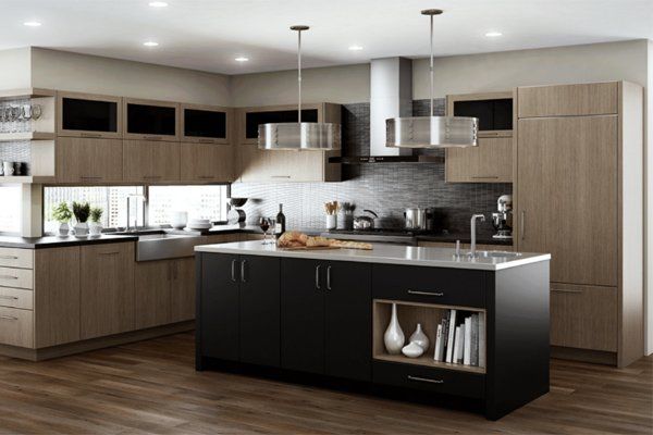 Soft shades of white, medium gray, chocolate brown, gray-brown and navy blue are among the popular current cabinet colors. They can be combined or used alone with a mix of textures to add interest.