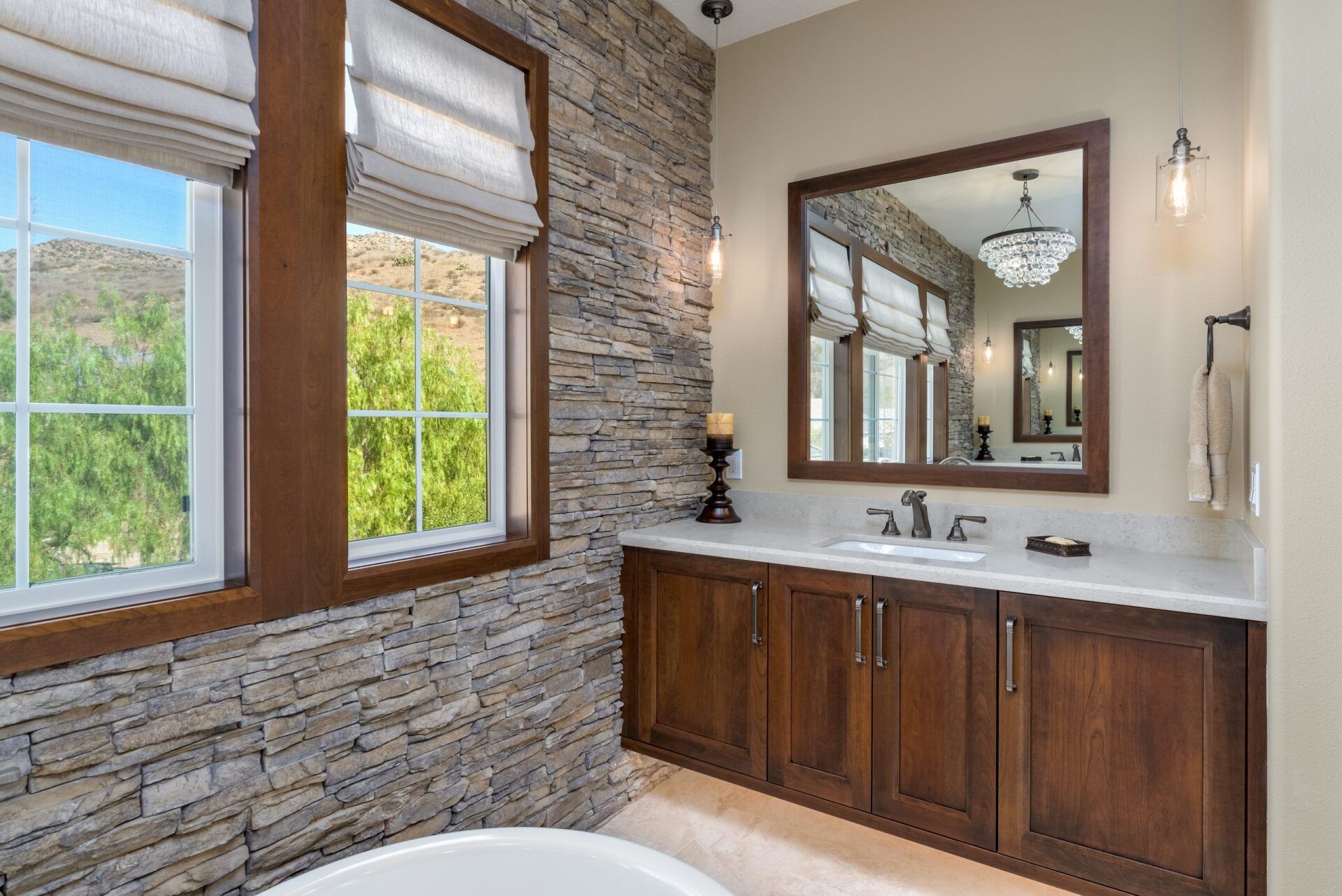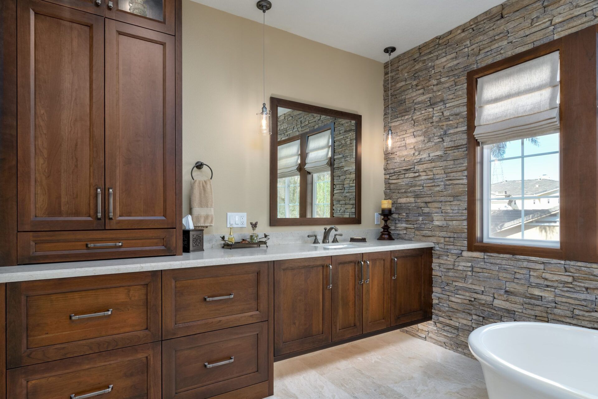 Dry-Stacked Stone Wows Master Bath Dos Vientos