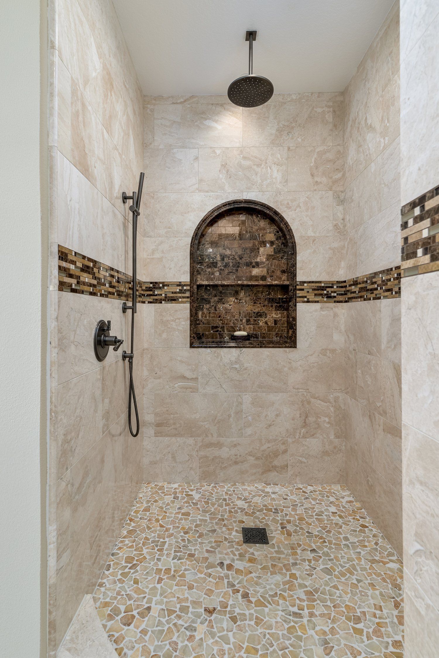 • Unique Shower Tile in Guest Bath Remodel Dos Vientos
