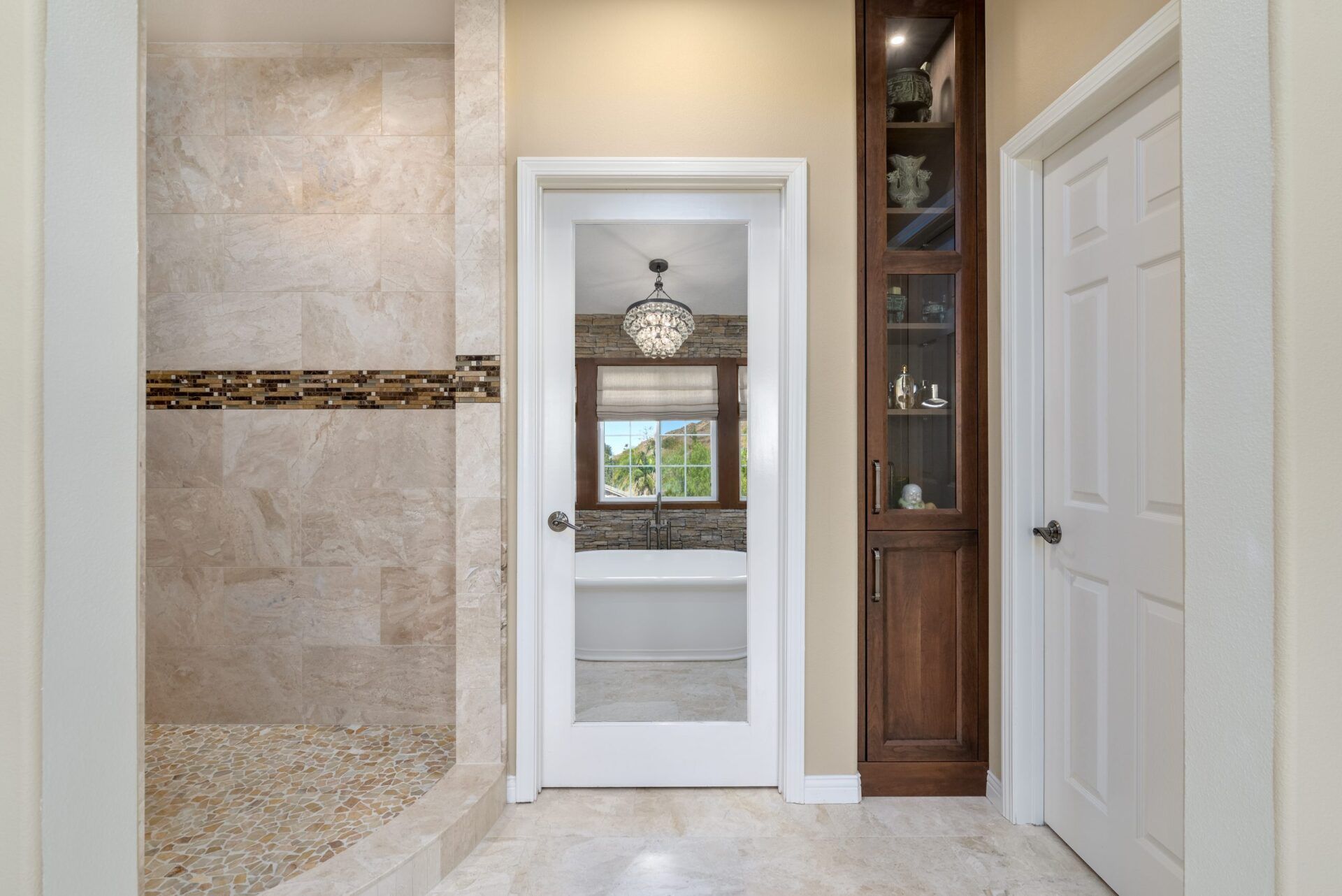 • Classy Master Bathroom with Daisy Patterned Accent Tile