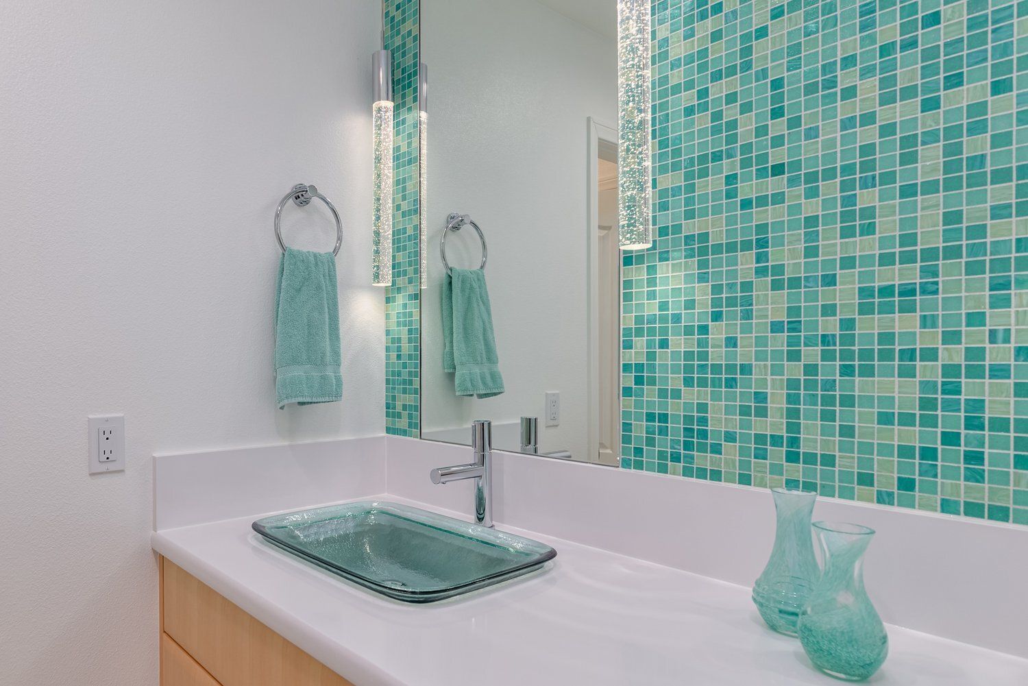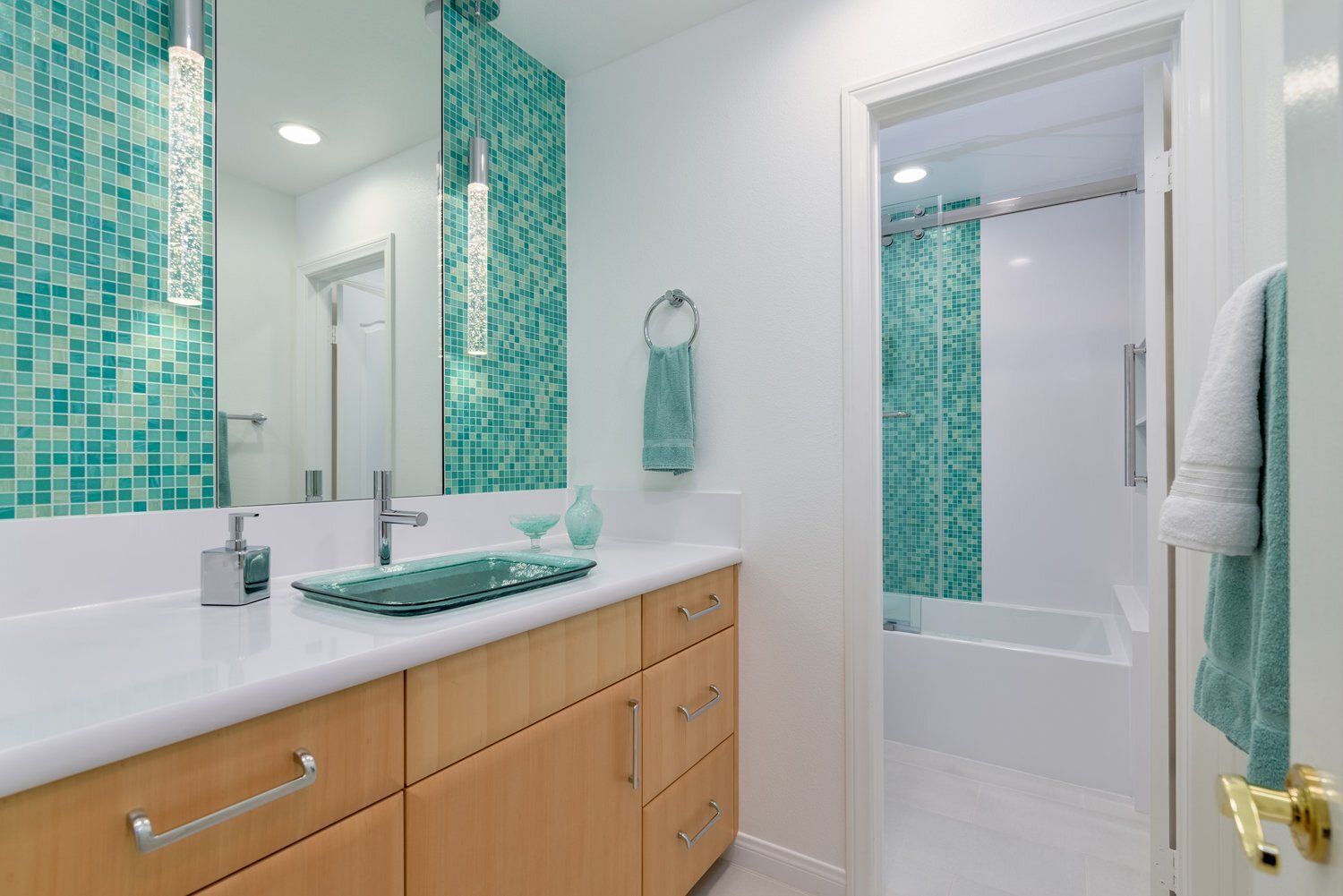 Aquamarine Mosaic Tile InspiresJack & Jill Bathroom