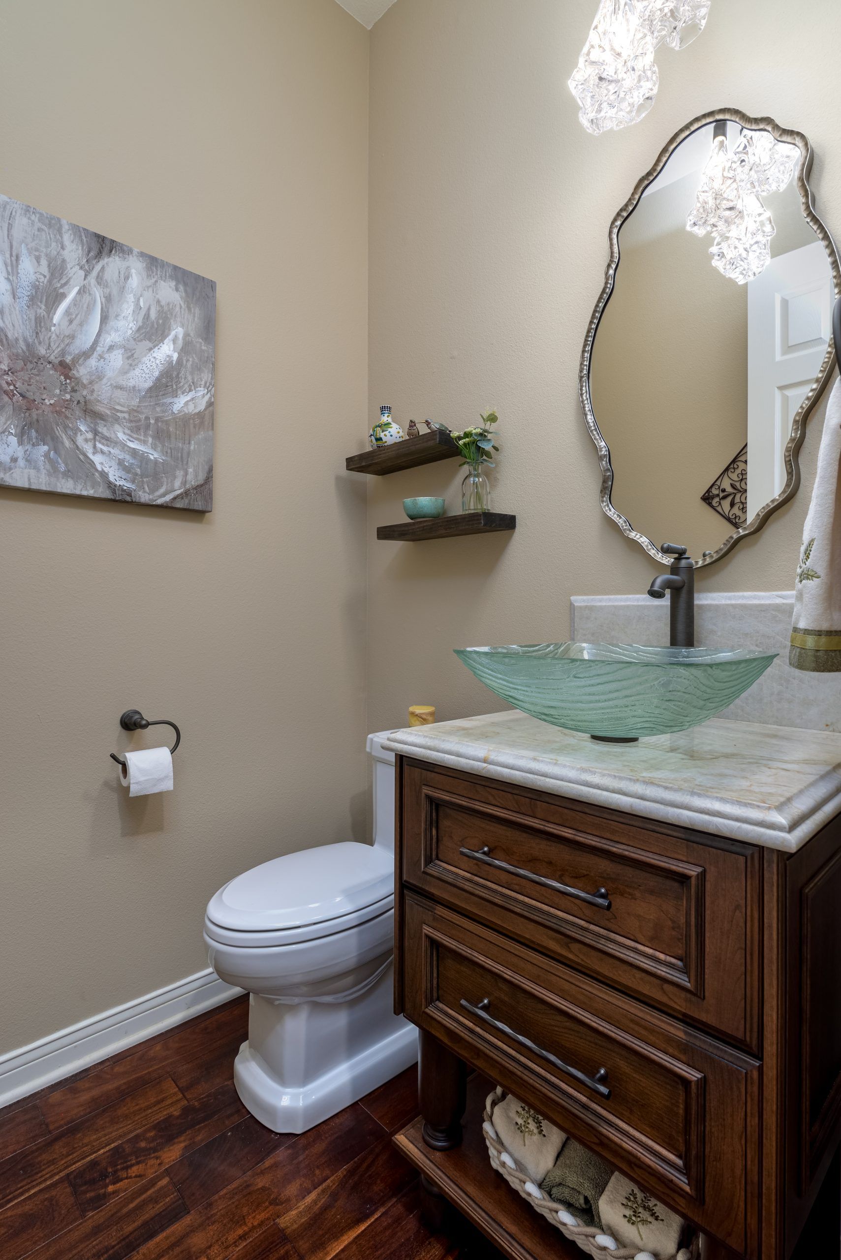 Artistic Touches In Powder Bath Remodel Dos Vientos