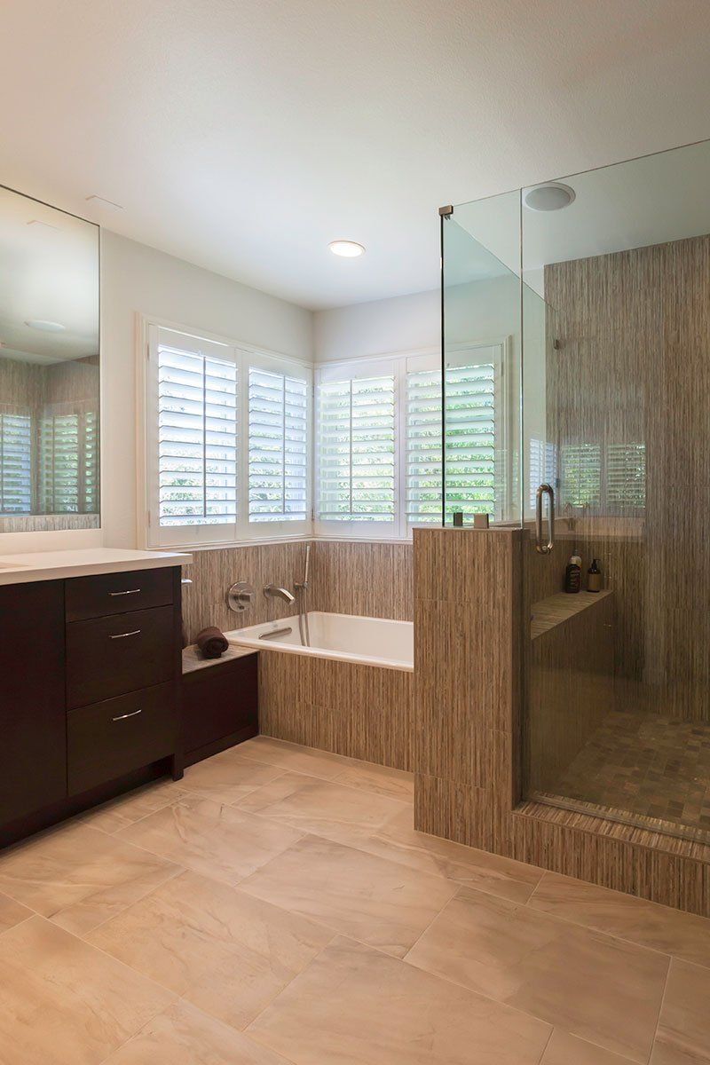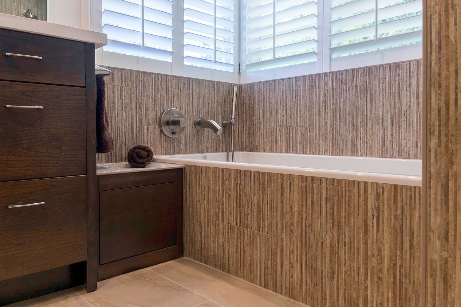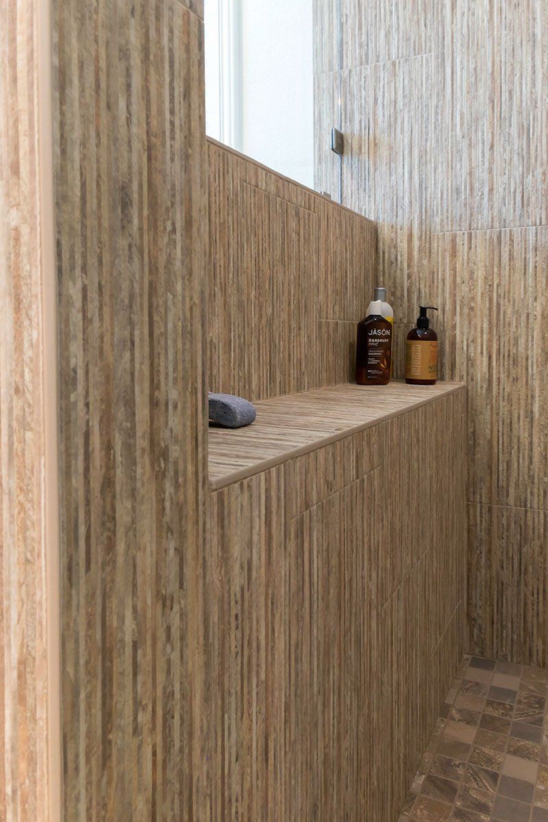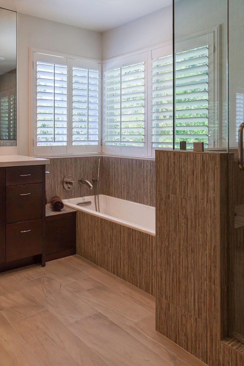 Wood Grain Tile In Unique Master Bathroom Westlake Village