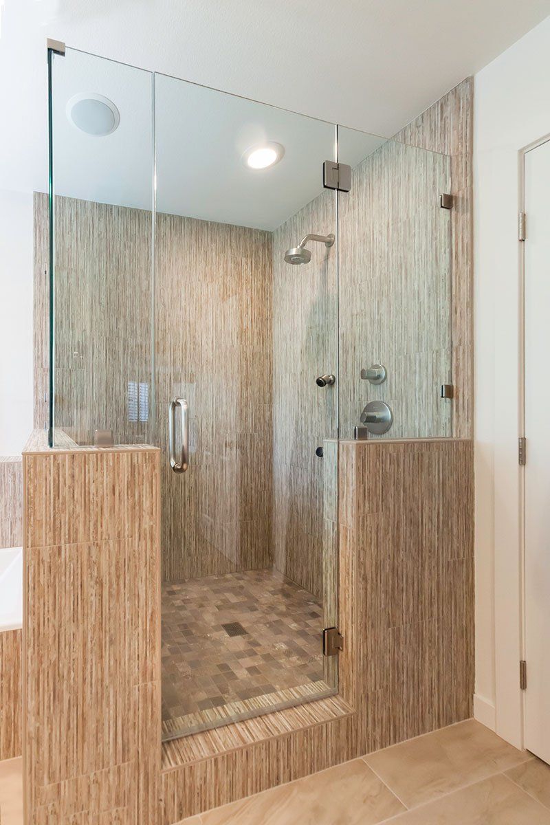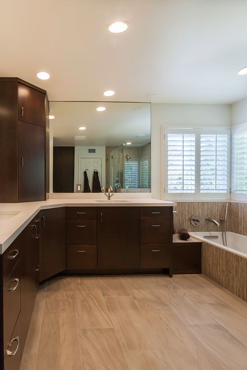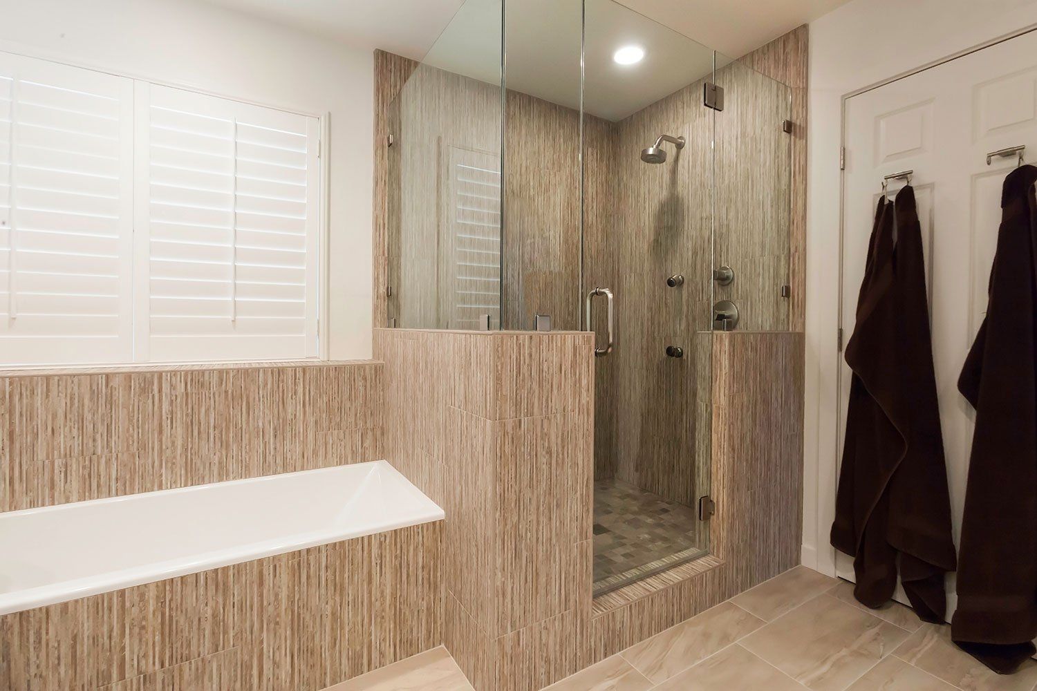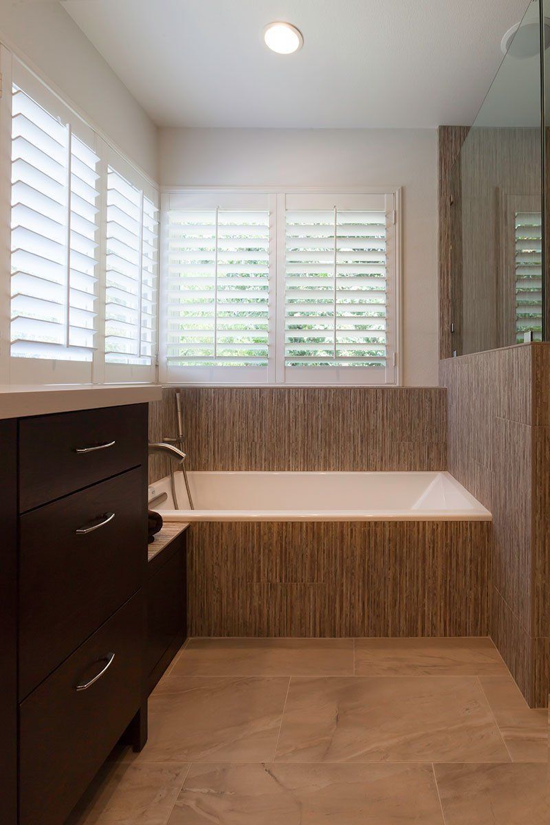 Wood Grain Tile In Unique Master Bathroom Westlake Village