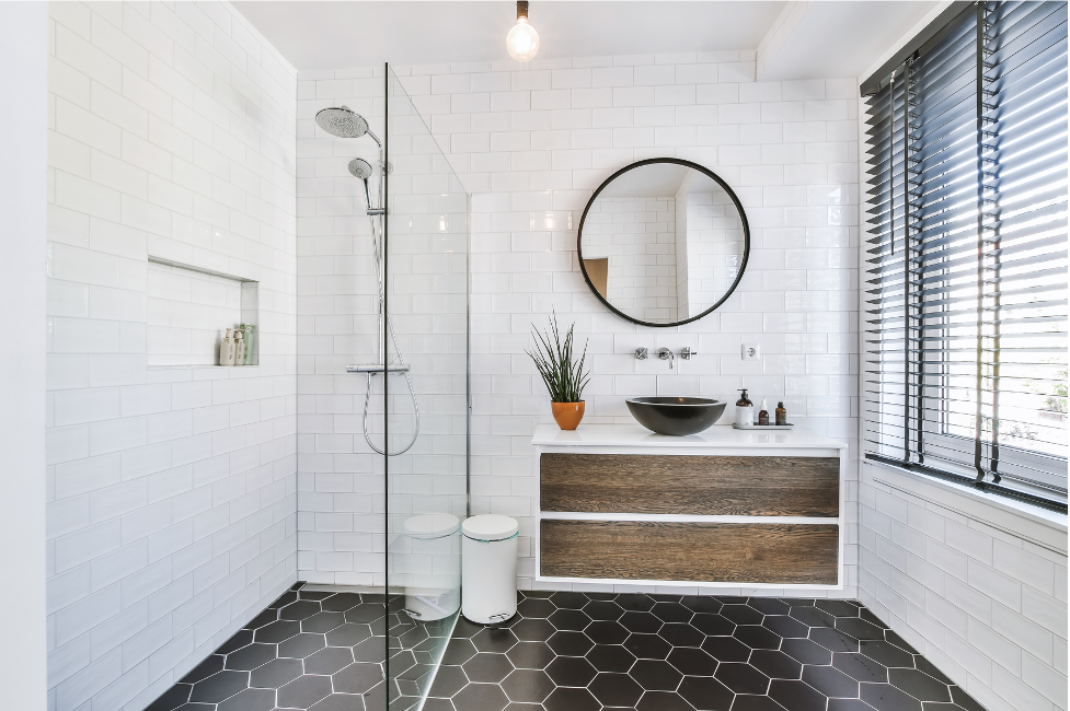 It can just be as easy as getting new tiles to change the look and feel of your bathroom. You can play around with shapes, sizes, designs, or colors to give your bathroom a renovation that not only looks amazing but also functions great. For adding durability in the face of water and heat, use a material that is resistant to such factors.