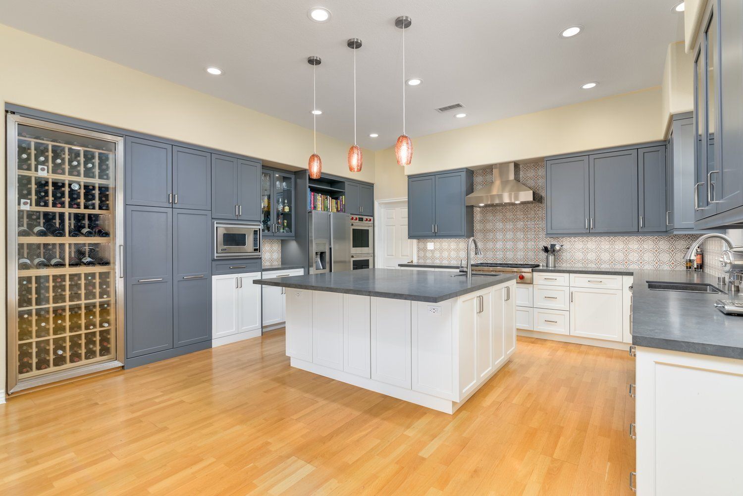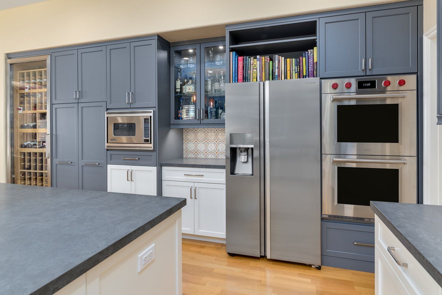 • Cool Blue & Gray Tones Agoura Kitchen Remodel