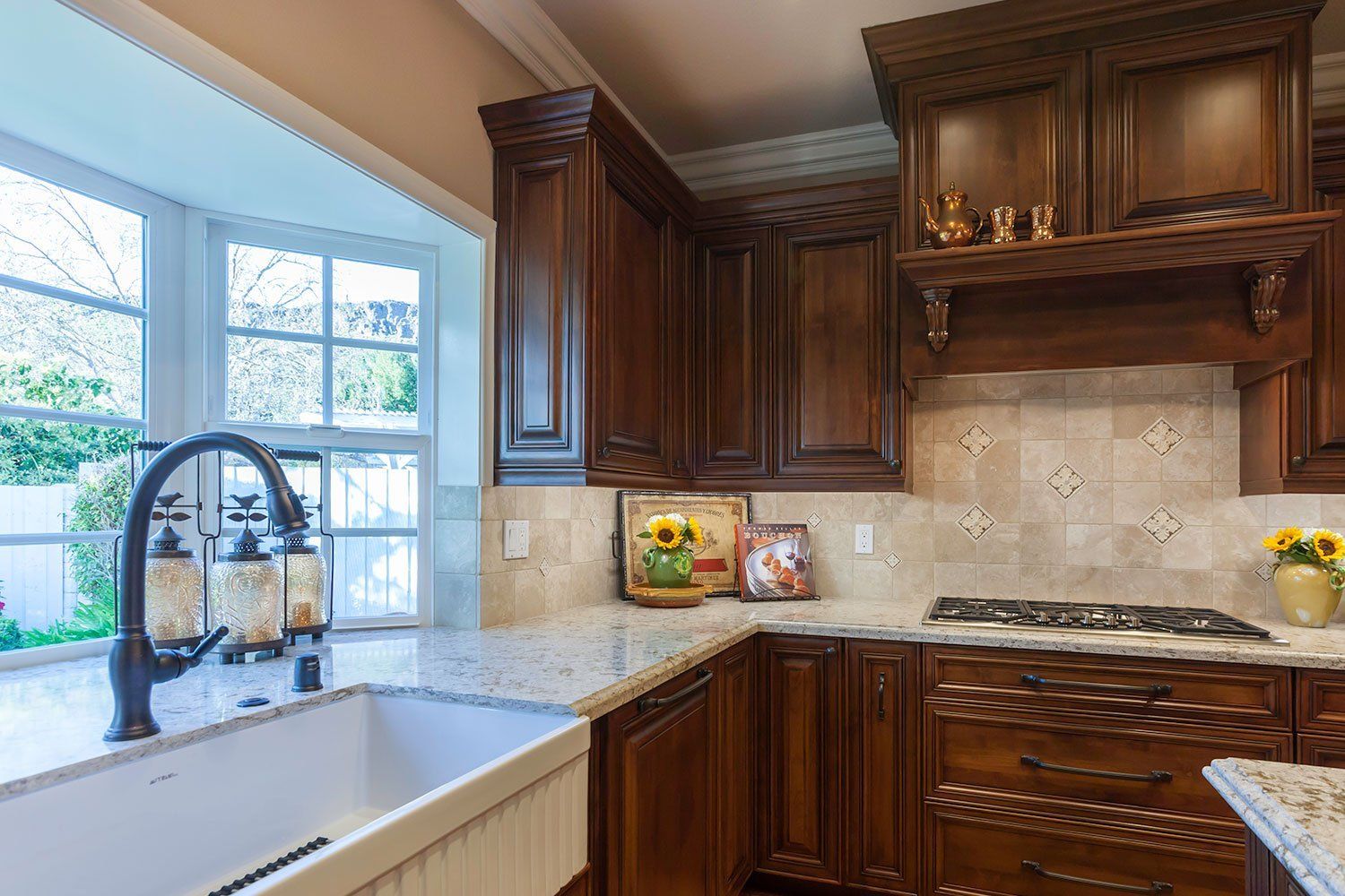 • Decorative Elements in Cream Colored Kitchen Remodel