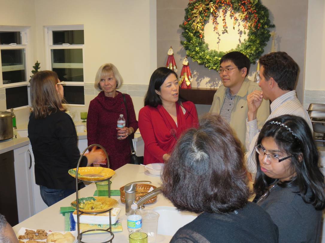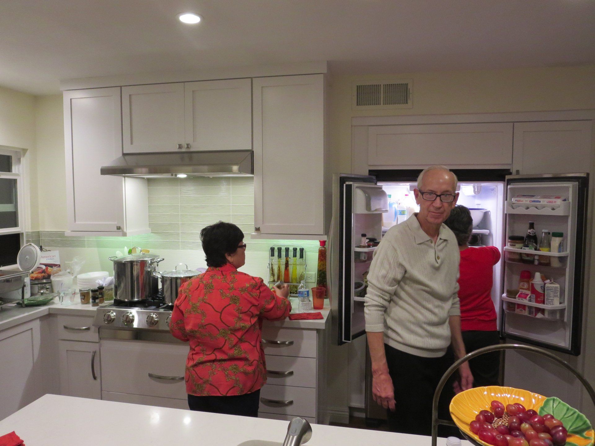 The house was decorated beautifully for the holidays, and a wonderful time was had by all. Not only did we have roast beef with all the trimmings, but the guests brought many delicious dishes, including lots of Filipino delicacies! One of the guests played Christmas carols on the piano with the skillfulness of a professional musician. Several guests danced to the music, while others gathered around to listen. Virginia’s newly remodeled kitchen and serving area looked fantastic.